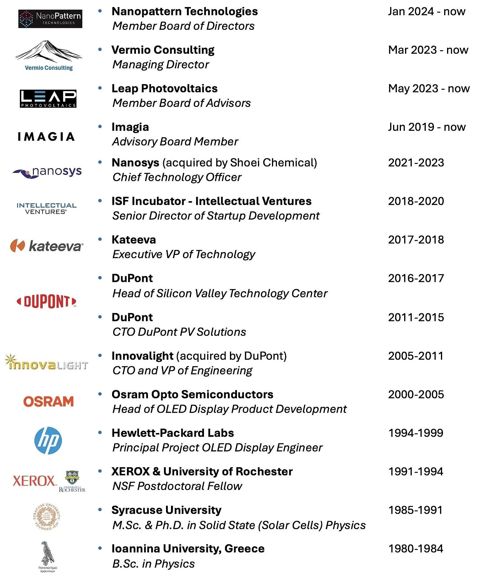 Dr. Homer Antoniadis, the Managing Director of Vermio Consulting, brings over 30 years of experience in hardware development spanning diverse fields such as displays, lighting, consumer electronics, and advanced materials. He has a proven track record of independently managing and developing complex hardware products. His extensive experience includes roles at prominent companies like Nanosys, ISF Incubator, Kateeva, DuPont, Innovalight, Osram, HP, and Xerox. Dr. Antoniadis holds a Ph.D. in solid-state physics from Syracuse University